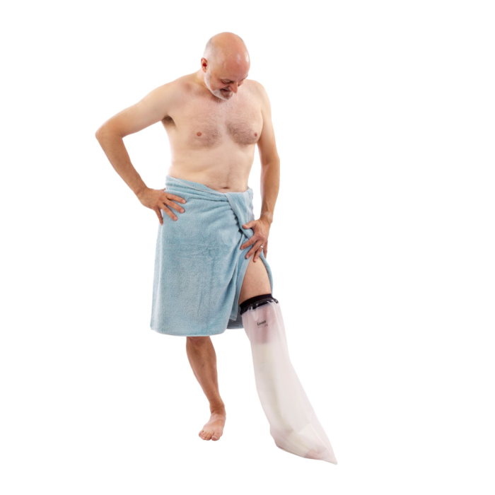 Vattentåligt Limbo-skydd för exempelvis gips. Obesvärligt och tåligt duschskydd skyddar sårförband, avlastning och gips mot vatten under dusch och bad Alla sömmar är värmeförseglade, vilket gör att duschskyddet tåligt och återanvändbart Skyddets öppning är tillverkad ur elastisk och tät neopren Nylonväv gör materialet mer tålbar och hindrar att det rivs eller sträcks sönder Designad att tåla regelbunden användning i minst 3 månader Användningstid 20 minuter åt gången, kan användas under lätt motionering i vatten